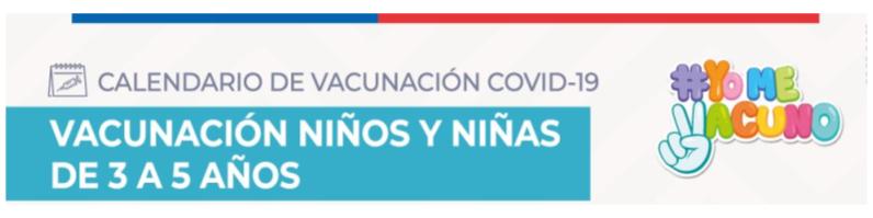 Estimados Apoderados, junto con saludar informarmos que desde el CESFAM de Nueva Aurora nos informaron del Calendario de Vacunación Escolar Covid-19 de nuestro Colegio para estudiantes en edades entre 3 y 5 años (Pre Kínder y Kínder) que aún no han iniciado su proceso de vacunación covid-19, es decir que no han sido vacunados (Quienes ya iniciaron el proceso de vacunación deben seguir dicho proceso en la fecha indicada en su carnet de vacunación).