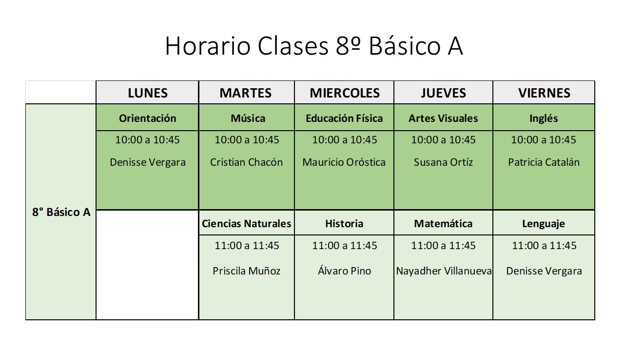 8º Básico A (Semana 2: Clases Meet Lunes 22 al Viernes 26 de Marzo).
