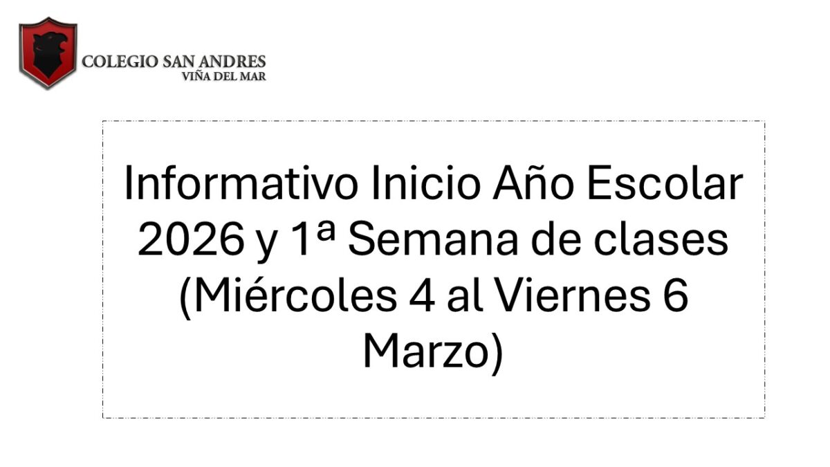 Estimados/as Apoderados y Estudiantes del Colegio San Andrés, junto con saludar informamos la modalidad de funcionamiento de esta primera semana de clases (Miércoles 4 al Viernes 6 de Marzo 2025).