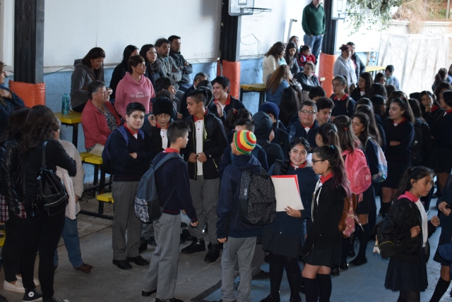 El acto se inició con el himno nacional e himno de nuestro establecimiento para proseguir con las palabras de nuestro Director Eduardo Guesalaga Cebrero, junto con la bienvenida de la representante del Gobierno Estudiantil Bárbara López Fuentes. El acto culminó con las palabras de nuestro inspector general, Javier Ávila quien informó a los estudiantes acerca de la distribución de salas y profesores jefes de cada curso.