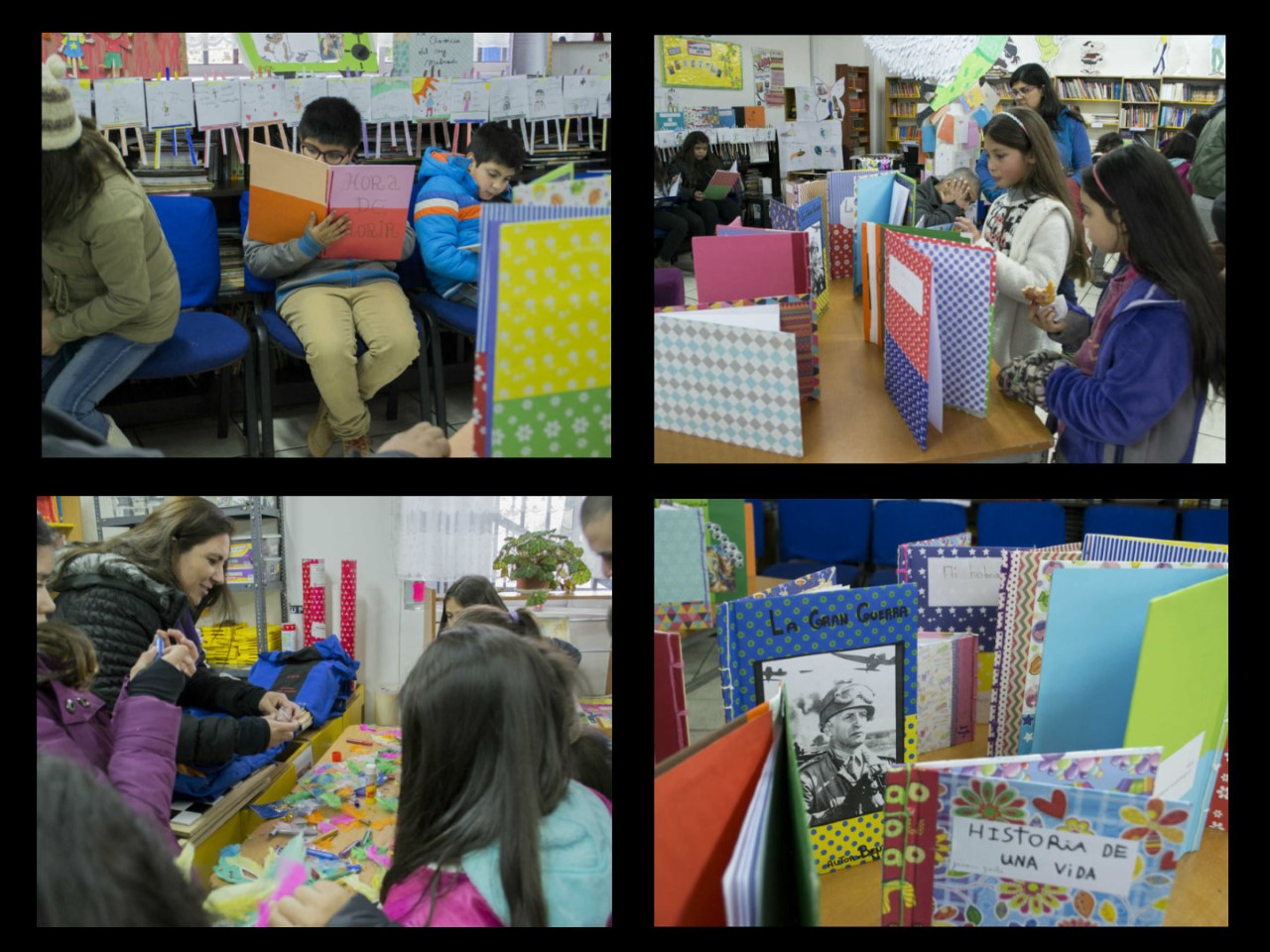 En relación a las actividades, se realizaron dos de forma permanente durante el tiempo que duró el encuentro (entre las 12:30 a 19:00 horas). Por una parte, en el Centro de Recursos para el Aprendizaje (CRA) se llevó a cabo una exposición de los trabajos realizados por los estudiantes del colegio de 1° a 8° básico, donde habían dibujos, exposición de cuentos, comics, libros y fotografías. Se buscó mostrar los aprendizajes y las formas en que los estudiantes se contactan de diferentes formas de literatura en sus clases. Además, tanto en el CRA como en la sala contigua se mostró el trabajo realizado por el Taller Avanzado de Lenguaje (4° básico) en el cual los niños se grabaron leyendo cuentos de su propia creación, en conjunto con las imágenes que inspiraron a dichos cuentos.