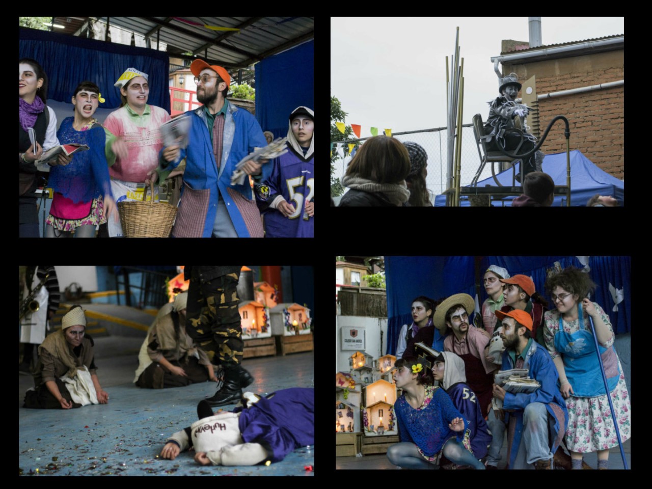 En cuanto a las diferentes presentaciones, el encuentro comenzó con la obra “El Tribunal del Bosque” de la Compañía la Hoja, la cual representaba a distintos personajes de los cuentos infantiles que enjuician a los autores por los estereotipos, prejuicios y generalidades con los que los creaban. Además, los actores de la obra bajaron del escenario, una vez finalizada ésta, para interactuar con el público y conversar con los niños presentes que les realizaron una serie de preguntas en torno al ser actor, el vestuario y el significado de la presentación. Posteriormente, se dio una ronda de Cuenta-Cuentos en la cual actores profesionales en conjunto con estudiantes del colegio contaron diferentes historias para deleitar a los asistentes de la actividad. Finalmente, se presentó la obra “Sopa de Piedra” del Movimiento de Acción Creativa Callejera, el cual buscó desde una perspectiva contemporánea, re-escribir la fábula Latinoamericana “Sopa de Piedra”. Una vez, finalizada la presentación, los actores participaron en una olla común que es parte de la obra.