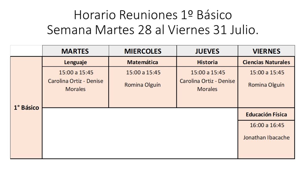 Reuniones 1º Básico (Retroalimentación y Cierre Ciclo de Aprendizaje)