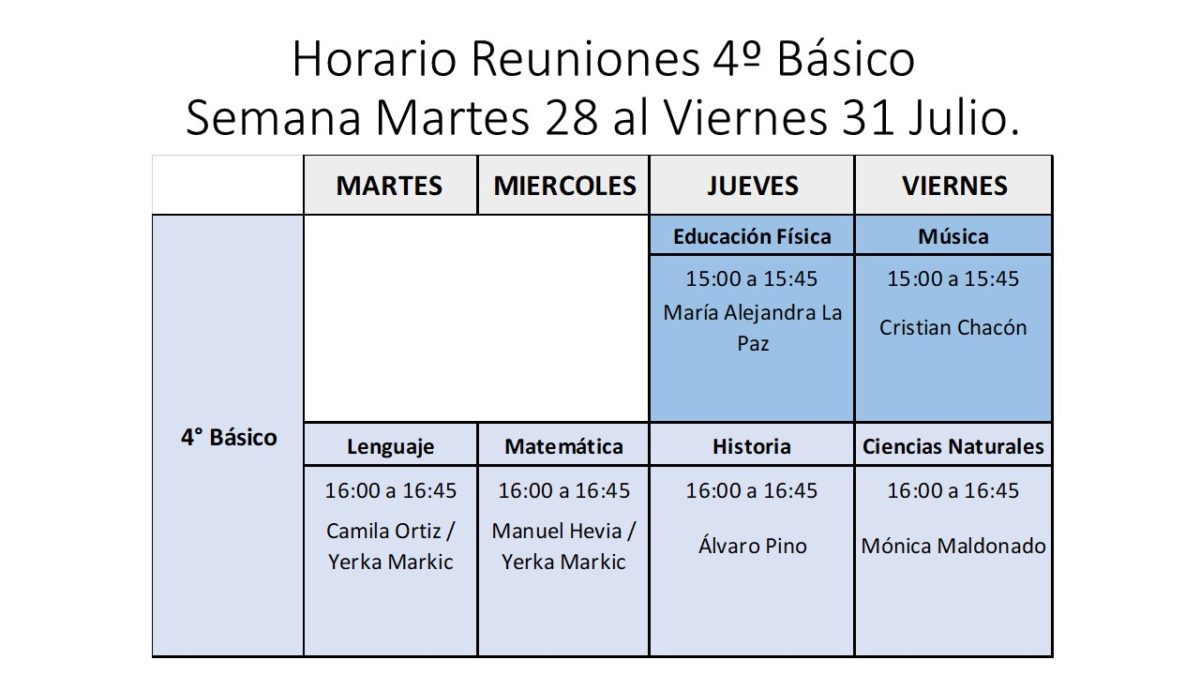 | Horario 16:00 a 16:45 |