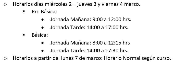 En el caso de los estudiantes de 1° Básico hemos asignado el acceso de portería para el 1°A, mientras que los estudiantes del 1°B deben acceder por el portón principal de calle chile sur.