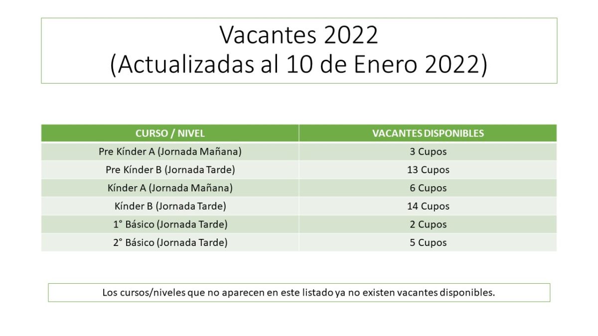 Dado que volveremos a los aforos regulares, es fundamental que aquellos estudiantes que aún no iniciaron su proceso de vacunación covid 19 lo completen para que, al inicio del año escolar 2022, la gran mayoría de nuestros estudiante se encuentre con su esquema de vacunación completo. Si bien no es obligatorio el proceso de vacunación, creemos importante promoverlo entre los integrantes de nuestra comunidad educativa, ya que lo ideal es que alcancemos al menos un 80% de vacunación (con esquema completo) entre todos los integrantes de la comunidad escolar.